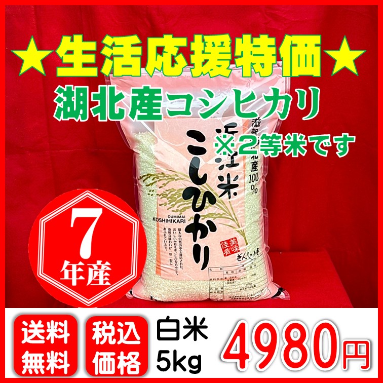 白米5kg, 通常商品★生活応援特価★湖北産コシヒカリ 5㎏¥4,980 白米5㎏×1袋 数量 ★生活応援特価★湖北産コシヒカリ 5㎏個 お買い物カゴに追加 お気に入りに追加お気に入りに追加済み 商品説明 ★生活応援特価★【湖北産コシヒカリ】白米5㎏×1袋 ※2等米です 単一原料米 令和7年産 滋賀湖北産コシヒカリ 〈保管方法〉密閉容器に移し、冷蔵庫などの冷暗所(10℃程度)で保管ください。 ※貯穀害虫やカビの発生原因となるため、1か月程度で使いきれる量のご購入をおすすめいたします。